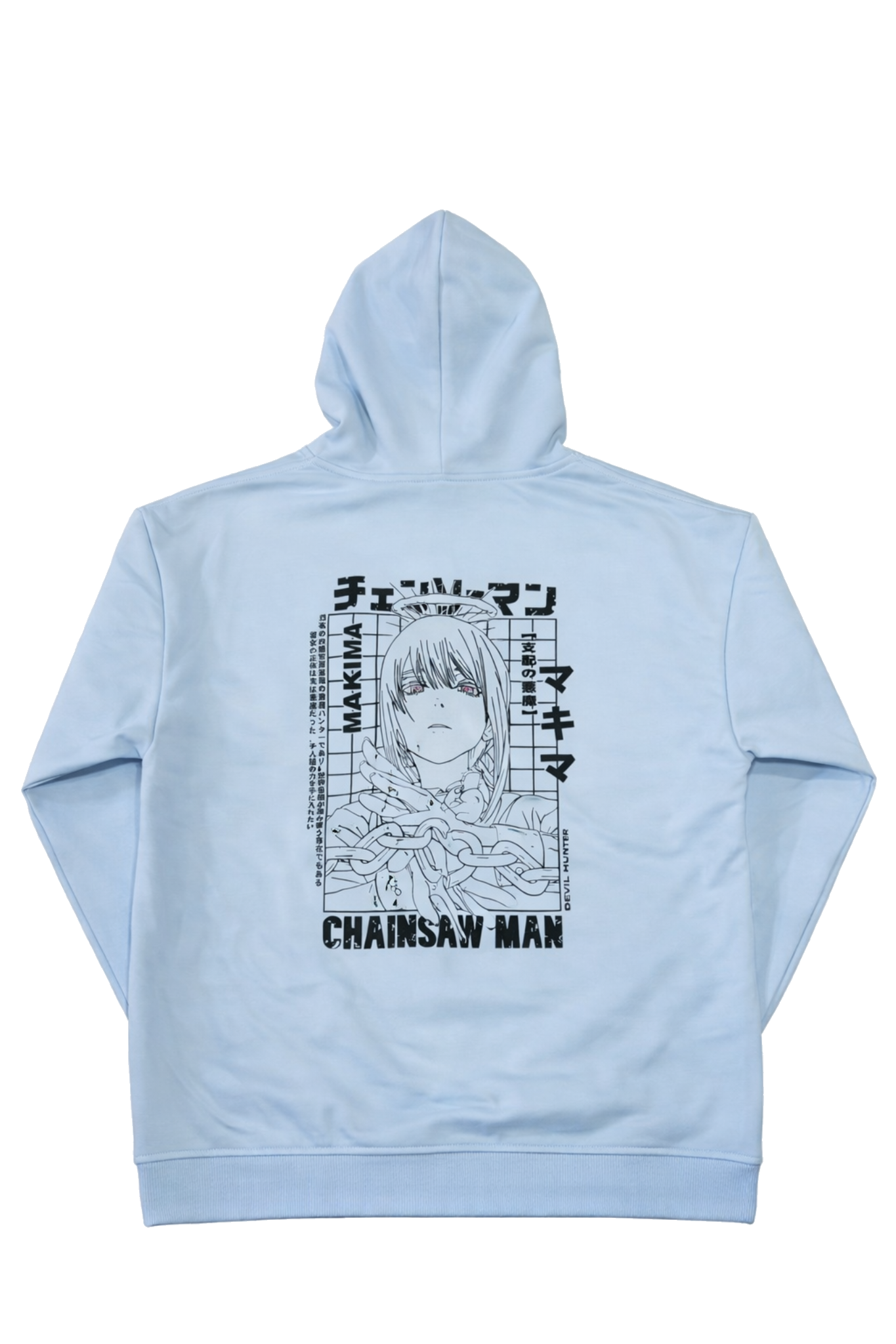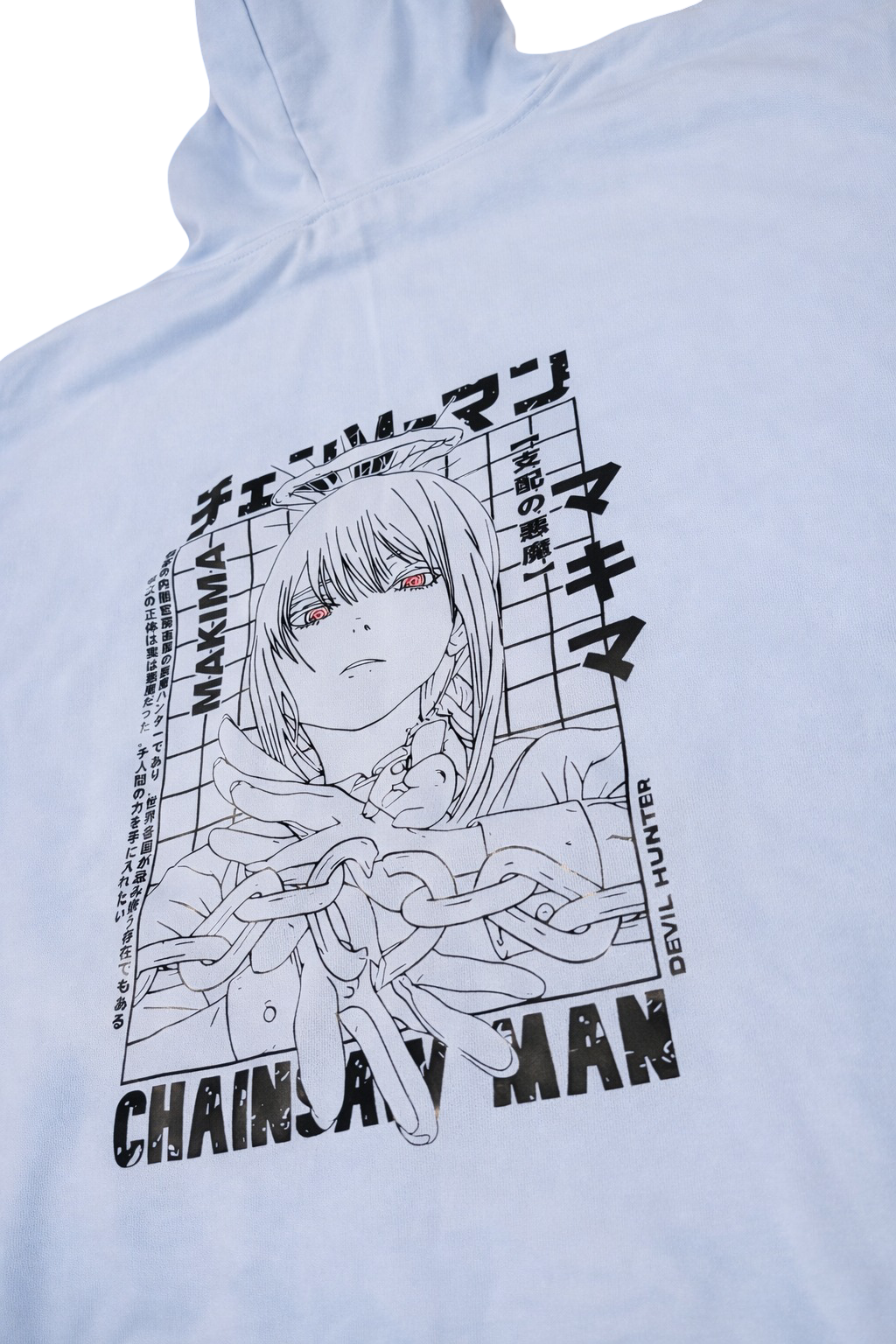 Design: Minimal Chainsaw Man logo on the front with a bold Makima back illustration