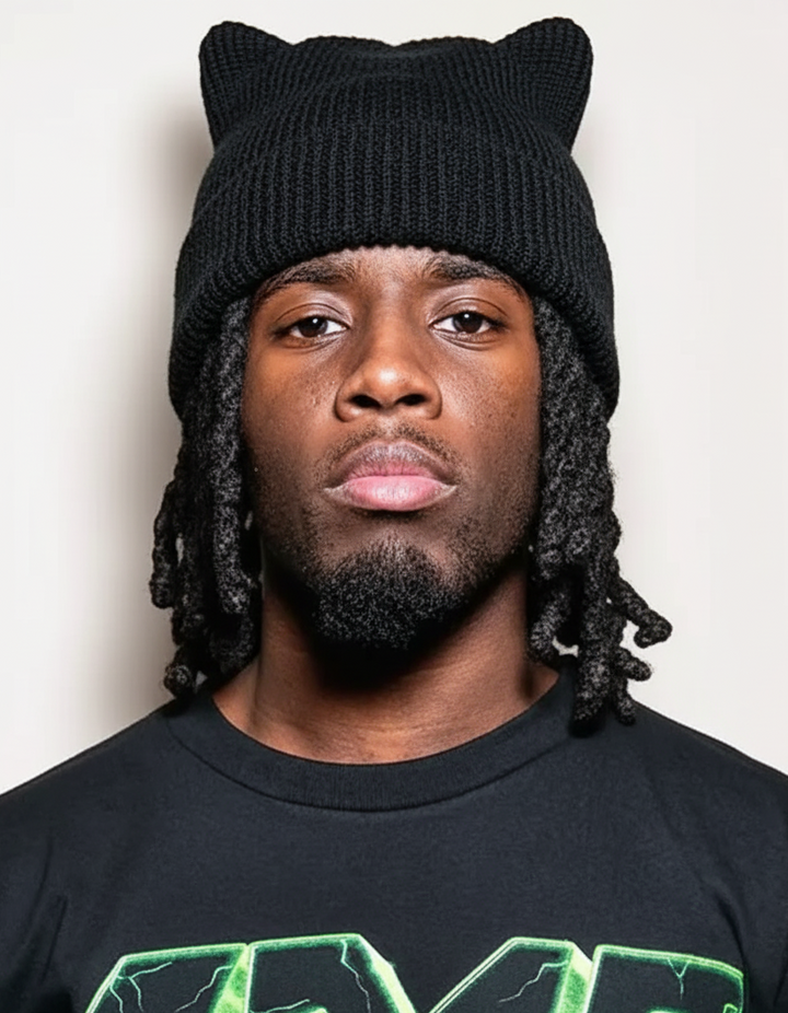 Fit: Relaxed slouch with subtle cat-ear silhouette