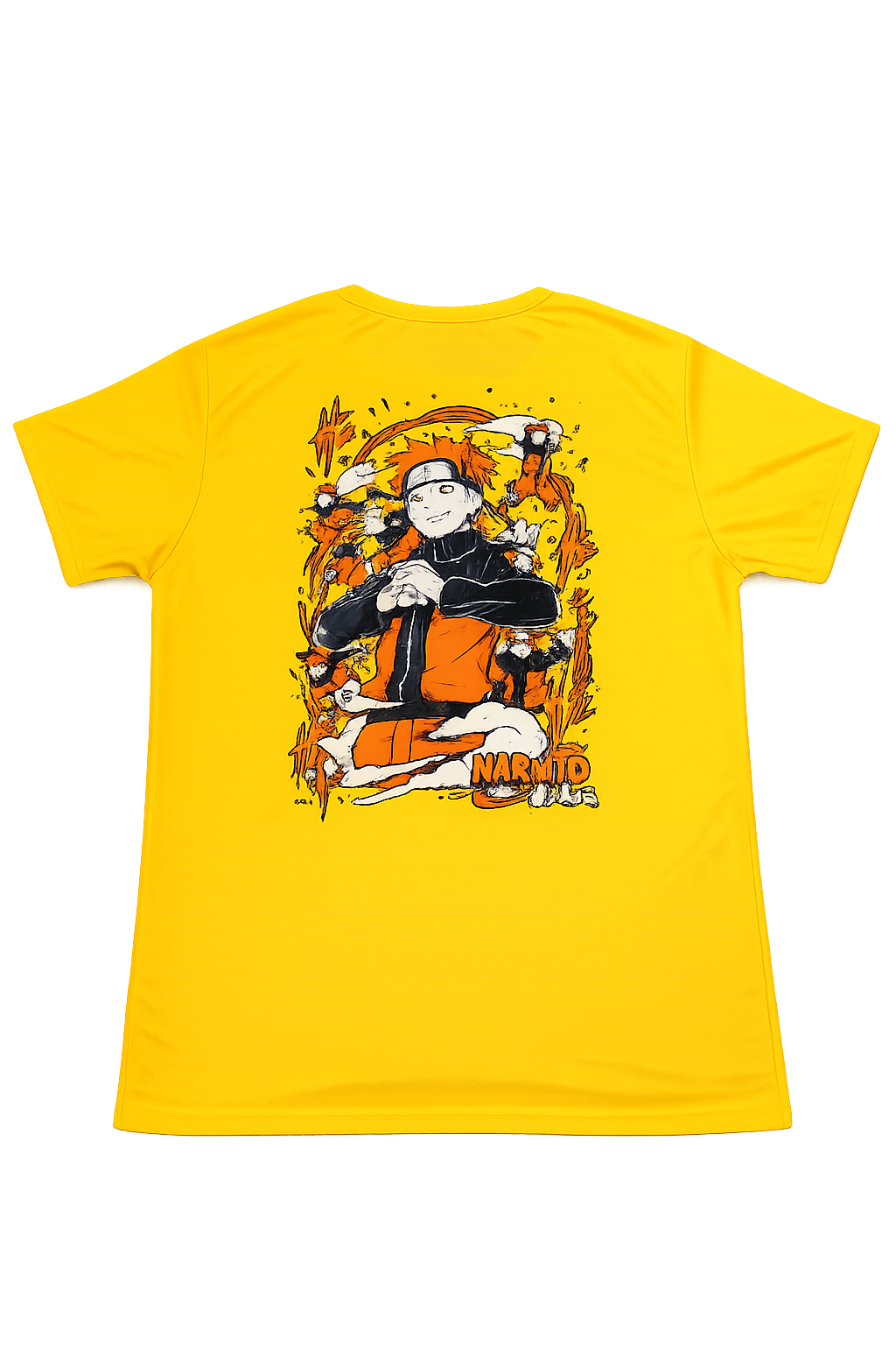 Design: Red Naruto chest logo with a bold Naruto Uzumaki back graphic